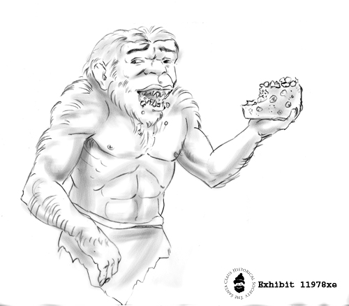 Homo clausicus enjoying an early rendition of what we now call "fruit cake".